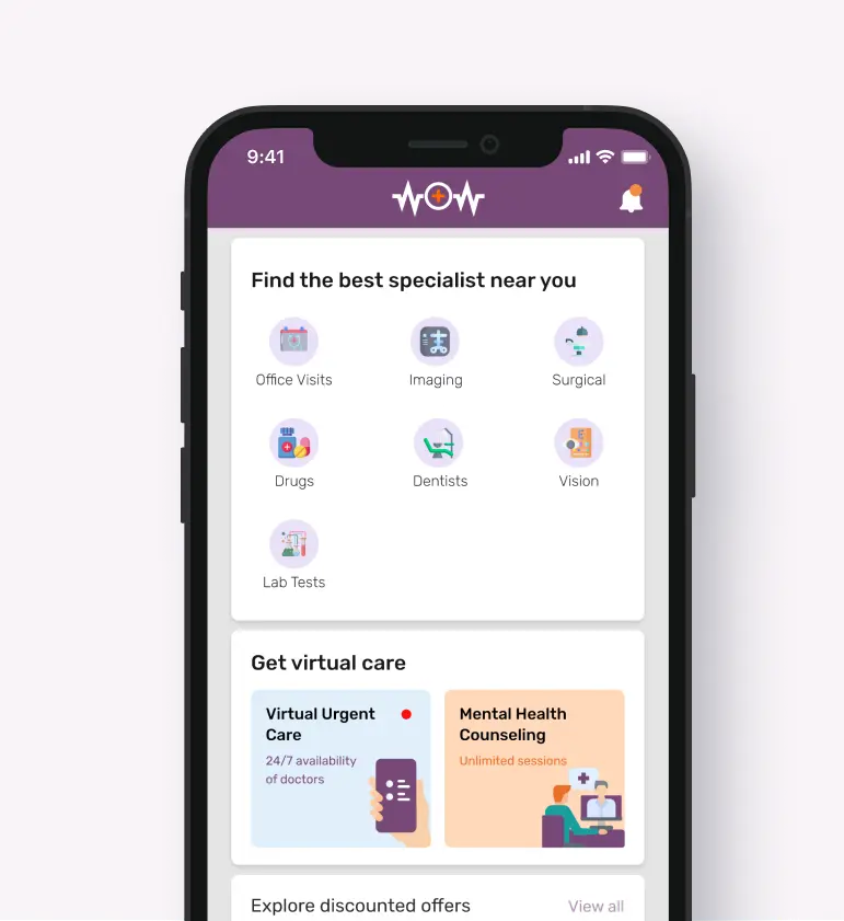 You can access your Telemedicine, Pharmacy, Dental, Vision, and other routine care programs from your WoW Health mobile App.